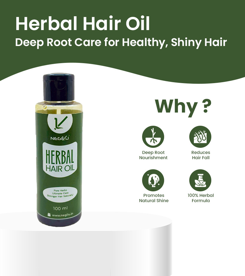 Trust Negilu's Herbal Hair Oil for a rejuvenated scalp and lustrous, healthy hair -naturally.